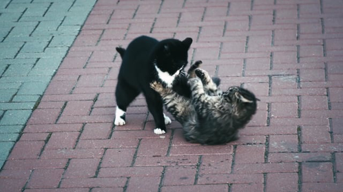 Domestic Tabby cat Playing