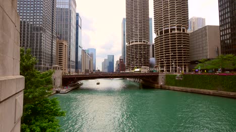 Boat Passing Under Bridge on Chicago river